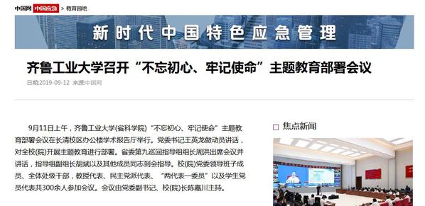 【中国网】齐鲁工业大学召开“不忘初心、牢记使命”主题教育部署会议