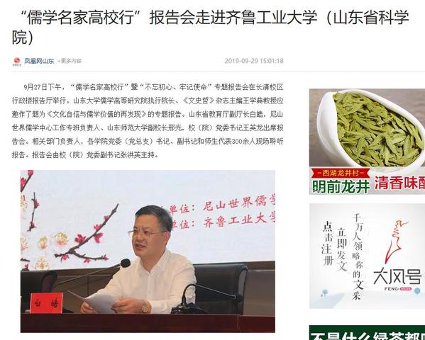 【凤凰网】“儒学名家高校行”报告会走进齐鲁工业大学(山东省科学院)