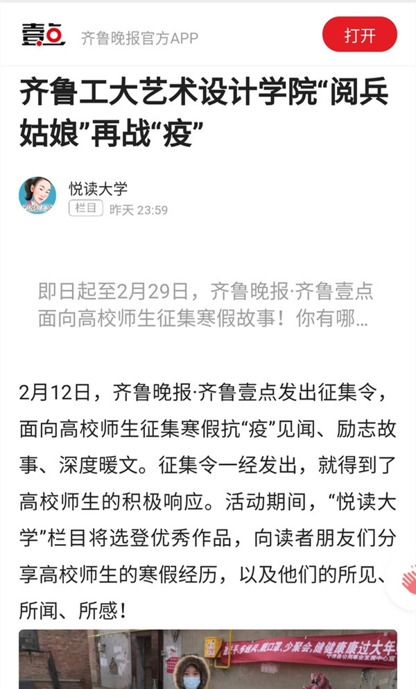 【齐鲁壹点】齐鲁工大艺术设计学院“阅兵姑娘”再战“疫”