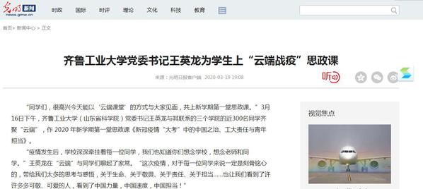 【光明日报】齐鲁工业大学党委书记王英龙为学生上“云端战疫”思政课