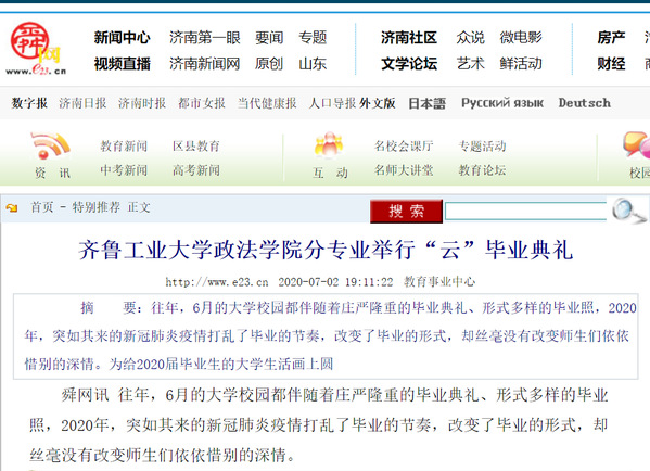 【舜网】齐鲁工业大学政法学院分专业举行“云”毕业典礼