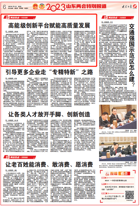【大众日报】高能级创新平台赋能高质量发展